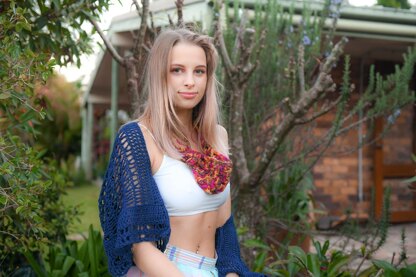 ~ A stylish and textured short scarf with the LOOK of popcorn, particularly when created with a brightly coloured yarn ~ Cluster stitches are used to create the texture ~ Works up quickly with a chunky yarn - great for gifts ~ The band is worked separately, but around the cowl using different texture for effect