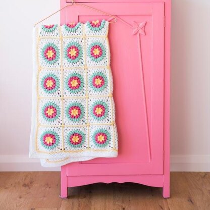 Popcorn stitch adds a beauitful amount of texture to this cuddly flower throw. This is a 10 page downloable PDF pattern for the Popcorn Granny Square Blanket you see here. This blankets is made up of 54 popcorn granny squares. There is a short tutorial on how to make a popcorn and the PDF contains both UK and US instructions, plus an easy to read chart. The blanket measures approx 90x 132cm. It uses 20 balls of Heirloom Cotton 8ply - Yellow x3, Pink x3, Mint x6 and White x8 but would look equally as beautiful in Paintbox Cotton DK.