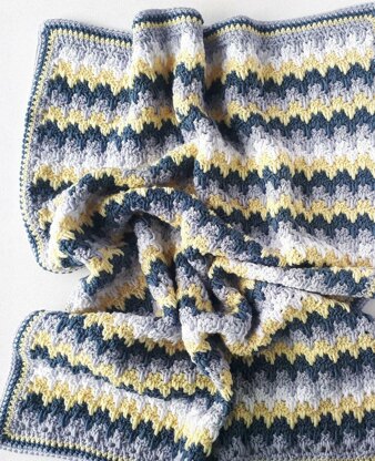 Modern crochet baby blanket with squishiness and texture! Use the Granny Spike Stitch in a 2-row colour repeat, to create this beautiful blanket. Fast and easy crochet pattern. The border is worked in the round