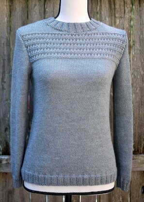Portal is a versatile sweater with timeless, classic lines. Repeating eyelets add interest and texture. Sweater is worked flat with set-in sleeve construction.