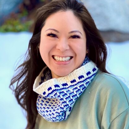 As an avid skier, my absolute favorite thing is getting out on the slopes early enough in the morning to make fresh tracks on new snow. The slipped-stitch patterning in this cowl brings me right back to the moments I love: standing at the top of a bowl full of powder, pointing my skis down the hill, and jumping in.