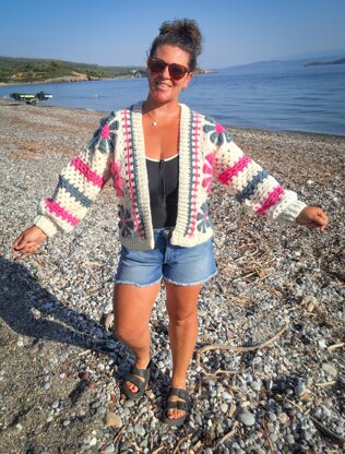 This Retro Flower cardy pattern is made up using DK yarn and is an intermediate level.