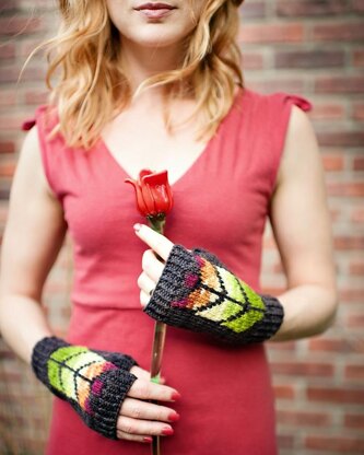 Modern mitts spotlight a graphic motif inspired by the stained glass windows of iconic American designer Frank Lloyd Wright. This pattern was originally designed as a kit in collaboration with Huckleberry Knits and the gradient colorway used for CC and shown in the photographs isn't widely available. I recommend using stripes of gradient mini skeins to mimic the effect or try a handspun, self striping, or solid color yarn for a different look.
