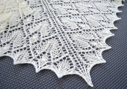Precious Lace is a triangular shawl, which is worked from top to bottom in all-over lace. Silver lined glass beads incorporated into the lace of the hem create a richly jeweled edge. This design also features the debut of the “Precious Lace" stitch pattern. Both charted and written (row-by-row) patterns are included along with detailed, simple to follow instructions.