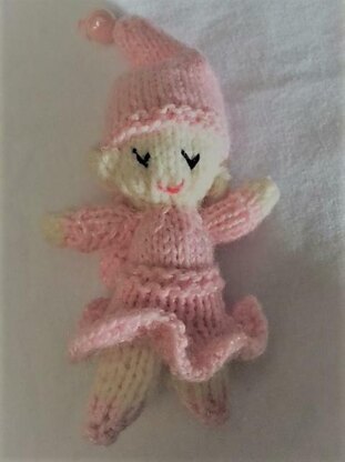 The body is knitted in one piece, the ears, arms, skirt, pixie hat & wings are made separately.