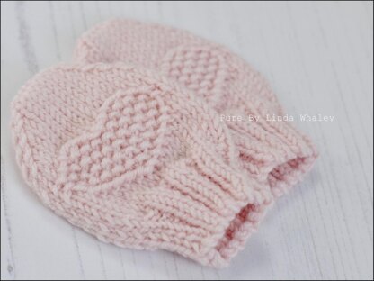 These tiny mittens are worked flat on a pair of single pointed needles.