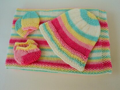 Preemie/Newborn Sun Hat and Blanket Set Knitting Pattern is a great gift to make for beach lover who is expecting. Hat 12" circumference and 6.5" tall with a wide brim to protect them from the sun, matching square blanket size 25" x 25" no scratch mittens and matching booties. 3 ply baby yarn used to create this set. Skill level is moderate, knit, purl, short rows, flat knitting, knit in the round. Pattern includes a materials list and detailed instructions (in English). PDF is a 3 page down load with the written instructions and photos. (405 KB)