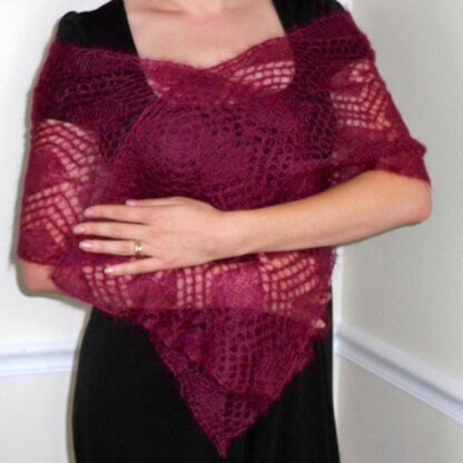 Look as pretty as you are in the light and airy knit-lace wrap. Show someone you care by making this original design just for her. This would make a perfect wedding shawl for either the bride in white or the bridemaid. It is perfect accent for any oufit at any time of year.