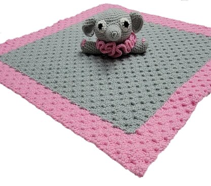 This pretty little pachyderm looks so cute in her pink ruffled collar! She’s sure to be a hit at your next baby shower or gender reveal party. Easy C2C blanket pattern with an amigurumi elephant attached in the center, both crocheted in worsted weight yarn with a size G crochet hook.