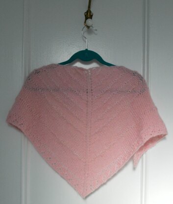 This triangular stockinette stitch shawlette uses dropped stitches to mimic the look of stripes. The simple stitch pattern lets the mohair yarn take center stage.