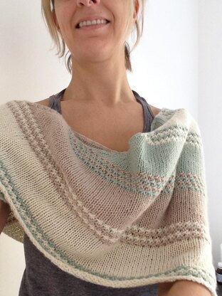 This pattern is very simple to follow and to knit. The shawl is suitable for an adventurous beginner, or it’s a pleasant, relaxing project for the more advanced knitter.
