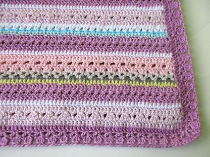 Lovely stripes are made with nine soft pastel colors of cotton yarn using a mix of crochet stitches for nice contrasting texture. This blanket is perfect project for advanced beginners to improve their crochet skills.