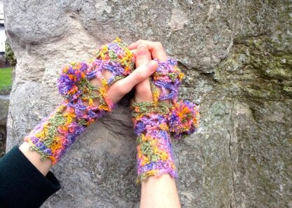 A quick and rewarding project, these fun arm-warmers could be just the boost you need to get through the last dark days of winter. 1 skein of this stunning yarn in fantastically cheery ‘Crocus’ colourway is certain to get you in the mood for spring! In this bright yet lacy hat and arm warmer combo, you will feel fun yet warm in the smooth silk and wool blend. With loads of body and texture, yet still easy to crochet with, this yarn is a spring-time dream.