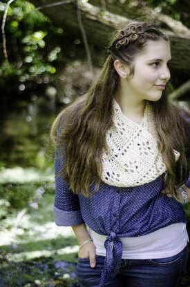 This is a nice drapey cowl that you can pin up to be asymmetrical with a shawl pin or button. You could also remove a repeat or two and make this tighter around for a younger child.