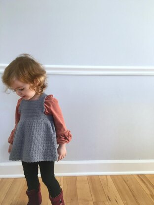 The pattern includes five sizes - 0-3 months, 3-6 months, 6-12 months, 12-18 months, and 18-24 months The pinafore is crocheted using a double strand method, using fine weight yarn - this creates a beautiful drape when it's worn.