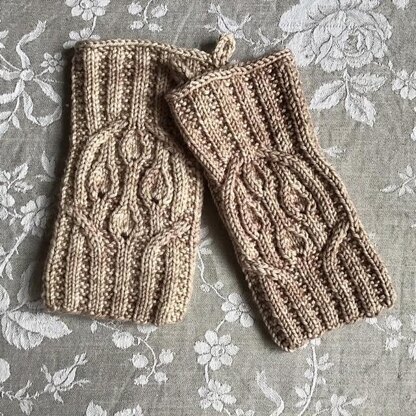 Diese Pulswärmer werden nahtlos in Runden gestrickt. Das Rippen - Zopfmuster zieht sich etwas zusammen und ergibt eine angenehme Passform. Die Länge ist persönlich anzupassen.