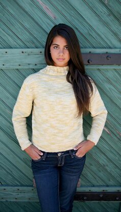 Thick and thin yarn adds a rustic feel to this simple pullover with a collar just deep enough to snuggle against the winter wind.