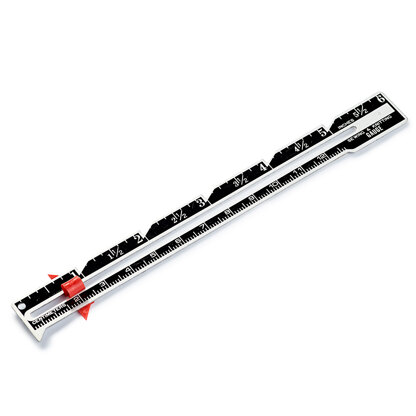 The small, practical, multi-functional hand gauge from Prym simplifies many measuring and marking tasks, which can be done directly on the sewing machine or on knitting or crochet . The red plastic spacers allow you to pre-determine the dimension of a seam and distances between button-holes and to transfer them effortlessly. A hole in the upper corner of the ruler makes it possible to secure the measurement and to use it like a pair of compasses to trace circles and curves. The scale is given similarly in centimetres and inches; the inch side has additional notches to make marking easier. This practical sewing accessory can also be used to size sewn-in pleats.