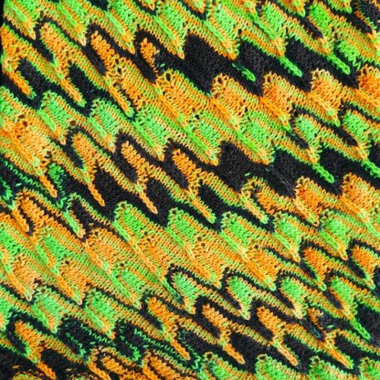 This pattern works best with self striping yarn. The pattern is easy to memorize. It’s only 4 lines long. Markers will help you keep your place in each repeat as you work through the pattern.