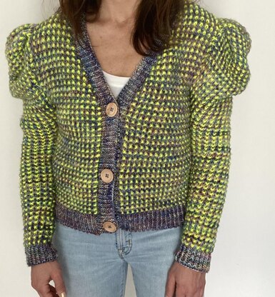 Puff Sleeves are everywhere! I love this look! It is flattering, fun, and perfect for this season! This cardigan is knit with a slip stitch pattern that is super easy but looks very advanced. Just grab 2 amazing colors and you are ready to go. The combinations are endless.