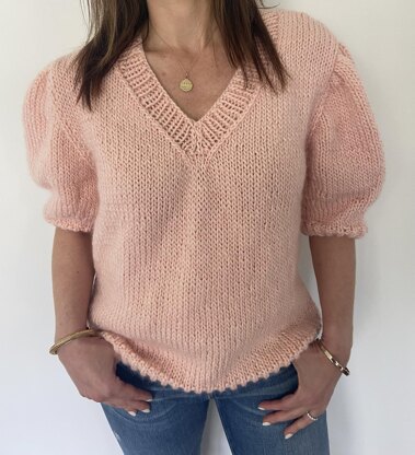 This design has a great simple shape with the added puff sleeve to make it the perfect addition to your wardrobe this season! It is a comfy and simple knit with a worsted weight yarn. Knit with a US#11 needle it is a great weight to wear in every season. You can easily make this sweater a crop top or even extend the length to make it longer.