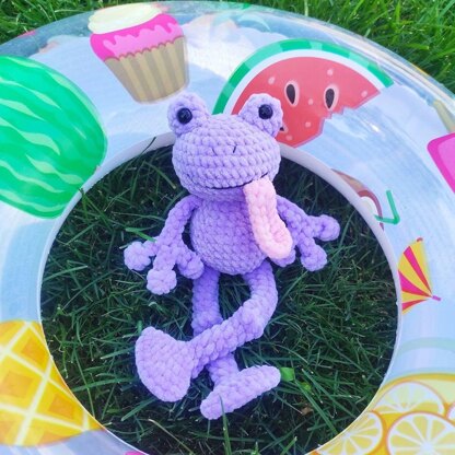 The crochet frog pattern includes 11 pages with easy to follow step by step instructions in English (US terms) and more than 40 photos of process. The size of the dog depens on the yarn used. Using bulky yarn and a 4.5mm crochet hook, the frog is approximately 10 ¼ inches (26 cm). Difficulty level : Beginner MATERIALS 1. Yarn: This example was crocheted from YarnArt Dolce (micro polyester, 100g = 120m, color 744 – light purple). 2. Crochet hook: 4.5-5mm, or in accordance with the yarn you use. 3. A little piece of a different color yarn or stitch marker. 4. Fiber filling (I use hollowfiber). 5. А thick needle. 6. One pair of 8 mm black half beads or safety eyes. 7. 20 cm of black cotton yarn for the mouth and nose.
