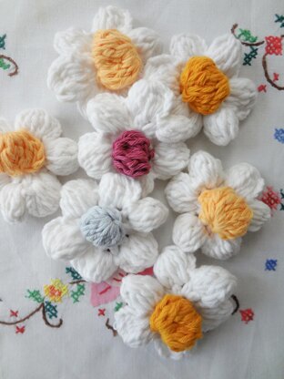 The best puffy flowers are made using heavy weight yarn, so experiment with different weights (DK, worsted, aran, jumbo) and relevant hooks, to see what flowers are more appealing to you and suitable for your needs.