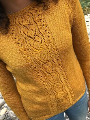 «Théo, je t’écris, j’ai mal à la vie, je deviens dément ! Signé Vincent, signé Vincent ». Cette chanson de Pierre Bachelet, que j’adore, m’a accompagnée pendant tout le processus de création du pull Johanna, inspirée par le tableau « Les tournesols ». Au travers de ce design, je vous transmets donc un petit peu de mon peintre préféré, Vincent Van Gogh. Mais alors, pourquoi le prénom Johanna ? Pour rendre hommage à une femme, peu connue, qui a su comprendre son beau-frère de peintre et qui a, de son vivant et après sa mort, fait énormément pour la reconnaissance de ses œuvres. Alors merci Johanna Van Gogh et place au design ! Johanna est un pull top-down, composé de raglans simples et de dentelles sur les manches et le devant. C’est ma petite œuvre d’art pour les 18 ans de ma petite sœur, tricoté en base mérinos de chez Yarneline, coloris Mme Bonheur.