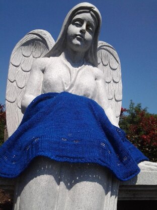 A crescent shape shawl knit from the top down. The double eyelet edging keeps the stockinette from rolling up on you. It is a small, lightweight shawl designed to stay on your shoulders and ideal to keep handy when the a/c is set to “arctic" during summer. Beading in the body is optional and at your discretion (translation: you choose if or where to put the sparklies). There is a substitute for the beading in the police boxes written in the pattern.