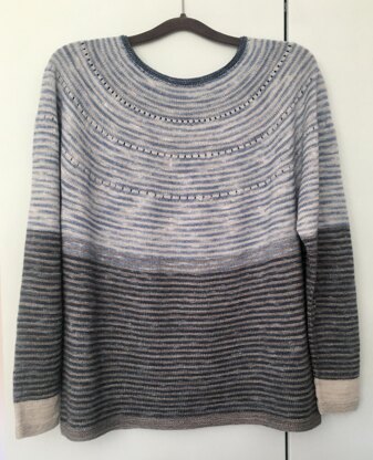Der Pullover ist von oben nach unten in Runden gestrickt.