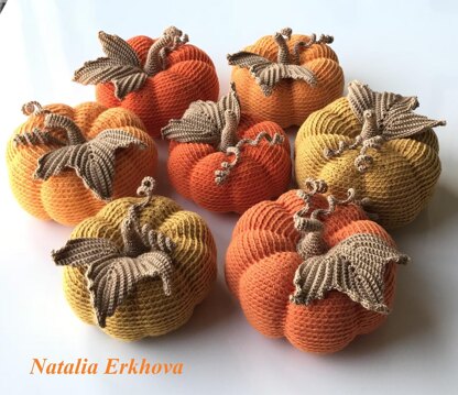 Materials: ● Yarn GAZZAL BABY COTTON 50g/165m, orange - for a pumpkin ● Yarn ALIZE FOREVER 50g/300m, brown - for leaves - this yarn should be twice thinner than for the pumpkin ● crochet hook matching your yarn ● filler of your choice ● PVA glue ● sewing thread of brown color
