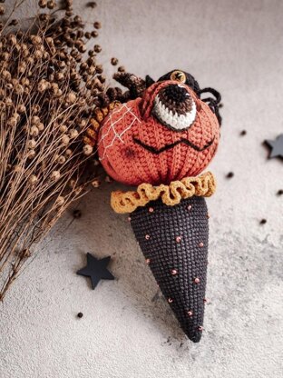 This pumpkin ice cream crochet pattern includes 40 pages of detailed crochet description, about 133 photos, and a list of materials. The size is about 9.65 inches (taking into account the pumpkin stalk and the ice cream cone). The pumpkin is attached to the ice cream cone with a metal button. This pattern doesn’t contain crochet lessons. Initial skills are required. The template is written in English (US terms).