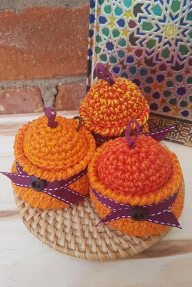 Easy crochet pattern for a small sturdy Pumpkin Pot with a lid to delight the whole family, ideal for Halloween decoration or gift-giving on any occasion. Quick and easy pattern.