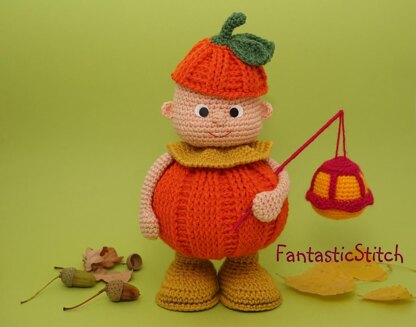 Crochet Pattern Autumn Pumpkin Man Amigurumi Instant Download PDF.