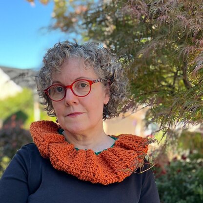 Embrace the spirit of fall with the Pumpkin Ruff Cowl! This whimsical pattern brings together simple double crochet and post stitches to form a textured "pumpkin-like" fabric that’s perfect for Halloween and beyond. With a contrasting color edging and optional drawstring, you can style it just the way you like.