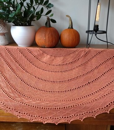 Pumpkin Spice is a large crescent shaped shawl made up from different gansey patterns with a flowing lace edge and a picot bind off - perfect for wrapping up in now we're having cooler weather!