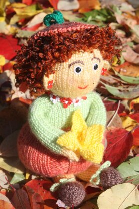 Punky the Flower Child has been invited to the Halloween Ball. But, she has a problem... she has no fancy skirt to wear! She heads to the pumpkin patch to ponder the situation. Suddenly the answer comes to her... she will find a pumpkin that is the right fit and wear it as a special skirt. So here she is, all ready to be picked up for the festivities. She has her fancy earrings and necklace on and her hat could not be more fitting! She even has the perfect corsage, a pumpkin flower direct from the pumpkin patch. She is ready to delight everyone and have a great time. Punky is an easy knit. She is knit mainly from Loops and Threads Elegance (3) for her skirt and Carons Simply Soft Light(3) for the rest of her. Her pumpkin flower she is carrying is included in the pdf. Make your own Punky to delight the youngsters at Halloween - or even the young-at-heart.