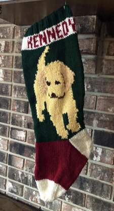 Knit this adorable Golden Retriever or Yellow Lab dog. The fuzzy soft ears bring a great element to this stocking.