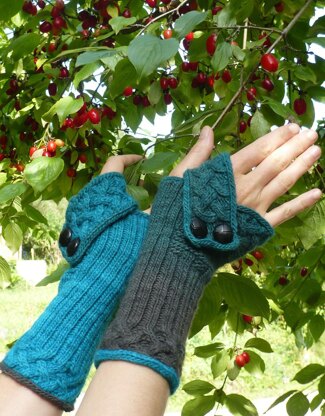 Pupu Springs Mitts are part of a small collection of mitts featuring a decorative flap that shapes the upper part of the hand and defines the thumb hole when folded over. They keep your wrists and palms warm while leaving your fingers and thumbs free to move.
