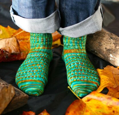 Worked from the top down this subtle slip stitch pattern is an ideal way to smoothly blend a variegated yarn or just add a little textural interest to your sock. The texture pattern is subtle enough to make this a great sock pattern for anyone.