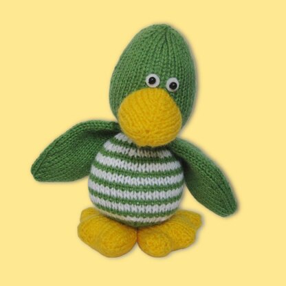 What do ducks eat with soup? ... Quackers! This little duck is worked mostly in stockinette, with increases and decreases for shaping and a striped body. Designed by Amanda Berry @fluffandfuzz, the duck is knitted in acrylic DK yarns on single pointed needles (not in the round). For confident beginners and above, other techniques used include casting on and off, knits, purls, increases and decreases, knitting stripes and seaming to finish.