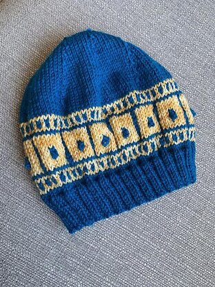 This hat is a great stashbuster, I used the leftover yarn from my Gold Leaf Sweater pattern. Knitted seamlessly in the round using the magic loop method, starting at the brim.