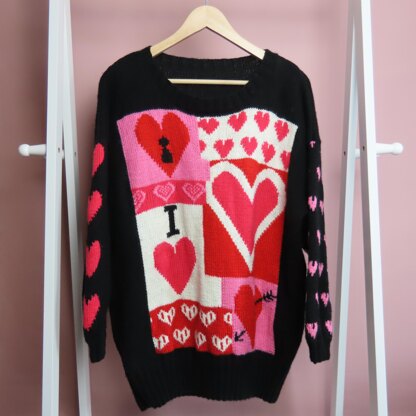 This over-sized jumper features all over colour work, including vibrant intarsia panels on the front and back worked from colour charts. The colour work makes this quite an advanced knit, although the jumper itself has minimal shaping.