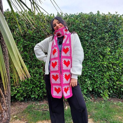 Say hi to the Queen of Hearts Scarf! This fun project is perfect for beginners who want to elevate their crochet techniques. We take the classic granny square and turn it into a heart by using tapestry crochet. The scarf is a repeat of one square, so at the end of the project you will excel in this technique used to create drawings in crochet.