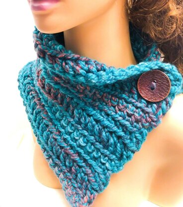 This pattern is really quick to make using a bulky yarn and a large hook. Since there are larger stitches it doesn't need a button hole. You will love making this scarf and it will make a unique holiday gift for family and friends.