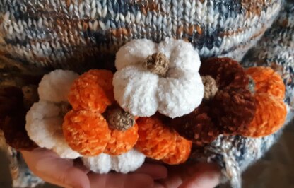 Like the title says, these little pumpkins knit up fast! They are knit flat and seamed up the side using only 16 yards of worsted yarn for the mini pumpkin and 23 yards of size 5 bulky yarn for the medium pumpkin. You can knit them in velvet yarn, but wool or acrylic works just as well. Instructions for a crochet pumpkin stem are included, but are optional. Hot glue a cinnamon stick or twig if you don't want to crochet the stem. Make your own soft squishy pumpkin patch! Makes great gifts for children, home decor. Add mini pumpkins to floral arrangements for an elegant touch.