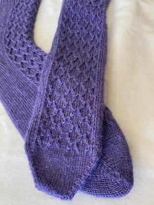 In appreciation and thankfulness for those quiet afternoons, these socks receive their name. They are, themselves, much like those afternoons: gentle and beautiful. Based on an eight-stitch repeat with twisted stitches worked every other round, I recommend knitting this pattern using a solid or tonal yarn to show the stitches as they sway from round to round.