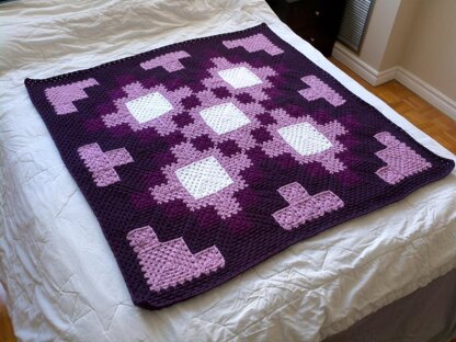 Inspired by colourful quilts with their intricate patterns, this blanket, part of my “Eventually Granny Square” series, is easily adjustable to multiple sizes.