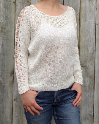 Quinoa Sweater, a casual jumper that blends together modern and rustic style! A simple but beautiful loose knit, top down, worked in round, featuring dropped stitches sleeve design.