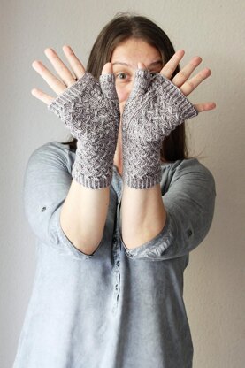 Playful stitches twist and twine through Qwist, a cozy fingerless mitt with a mischievous texture.